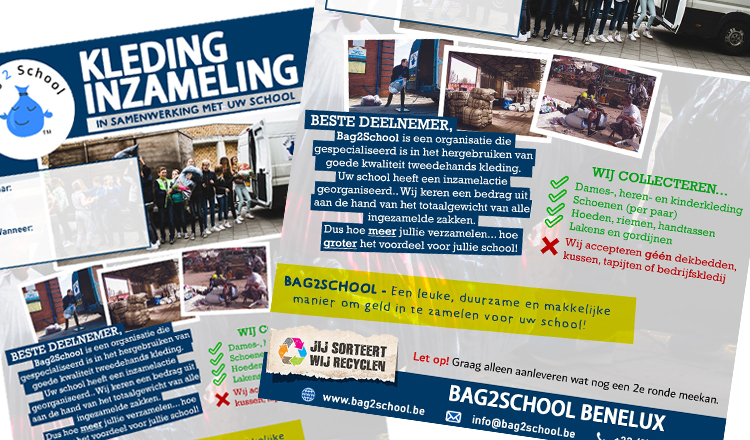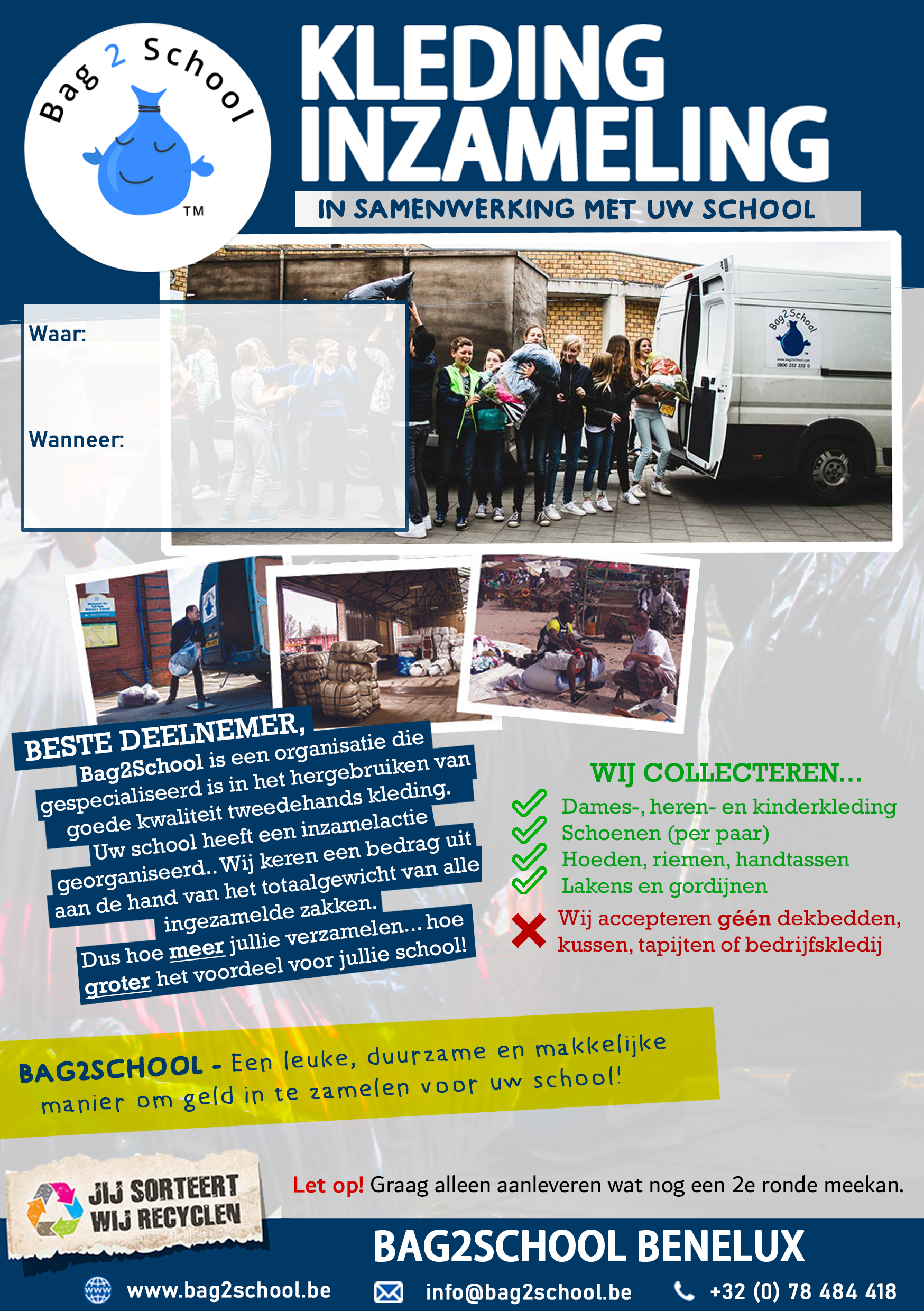 Hang ze niet alleen binnen de school, maar ook in de buurt. Er zullen genoeg mensen zijn die ook van hun kleding af willen en zich in willen zetten voor wat extra’s voor jouw school of kinderdagverblijf. Om het nog makkelijker te maken hebben wij alvast een poster voor je gemaakt. Download hem hier.